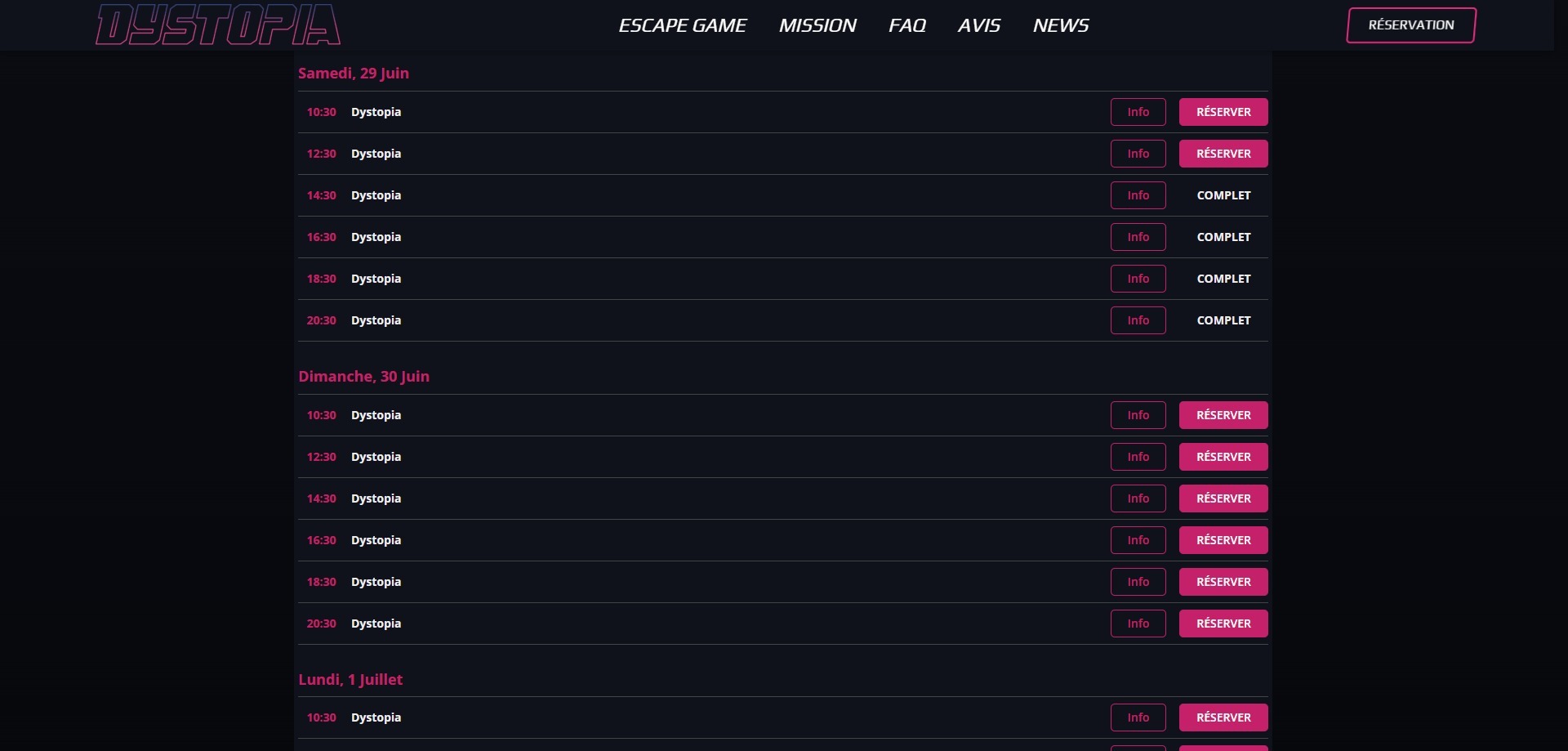 Développement d'un site web pour l'escape game Dystopia à Bruxelles