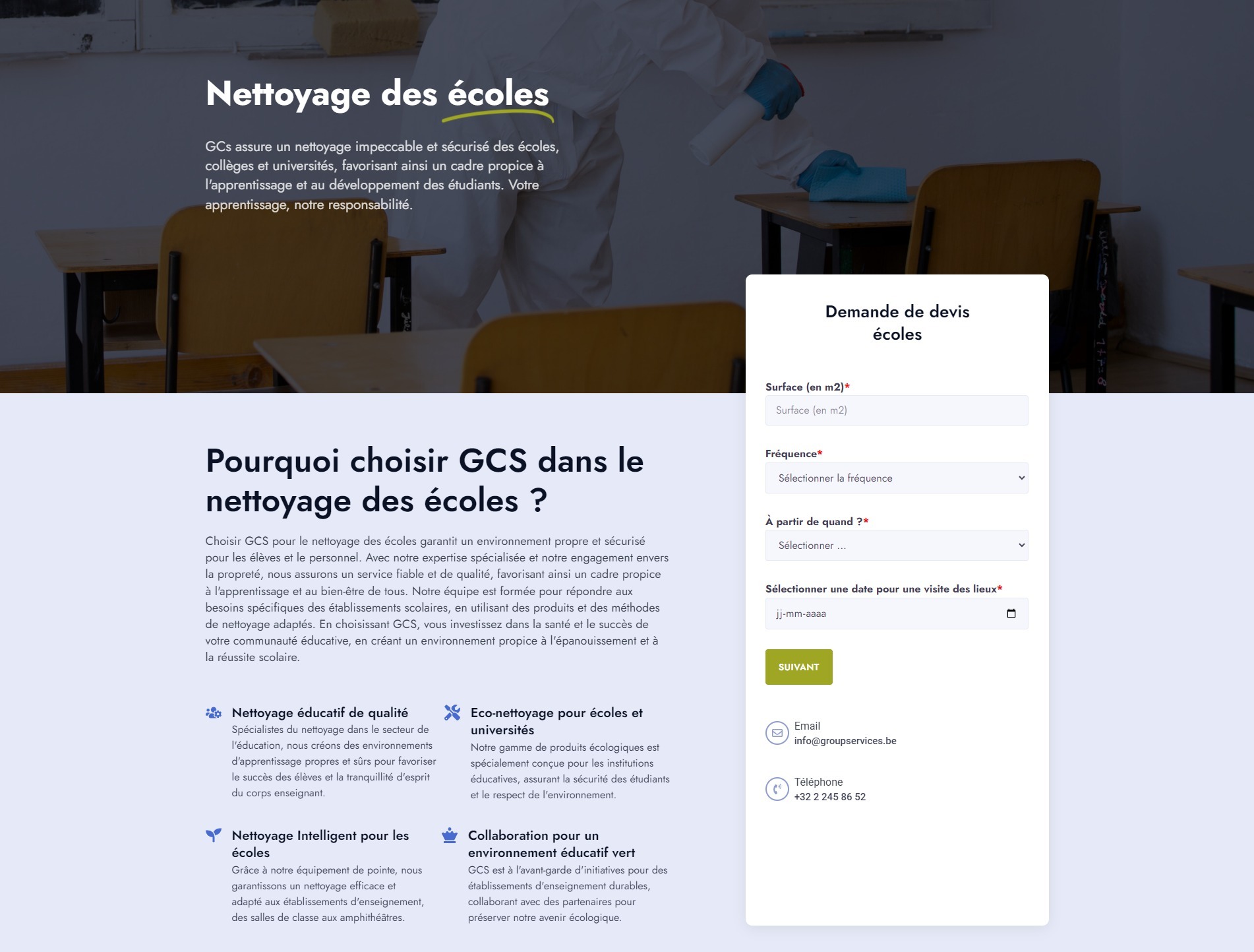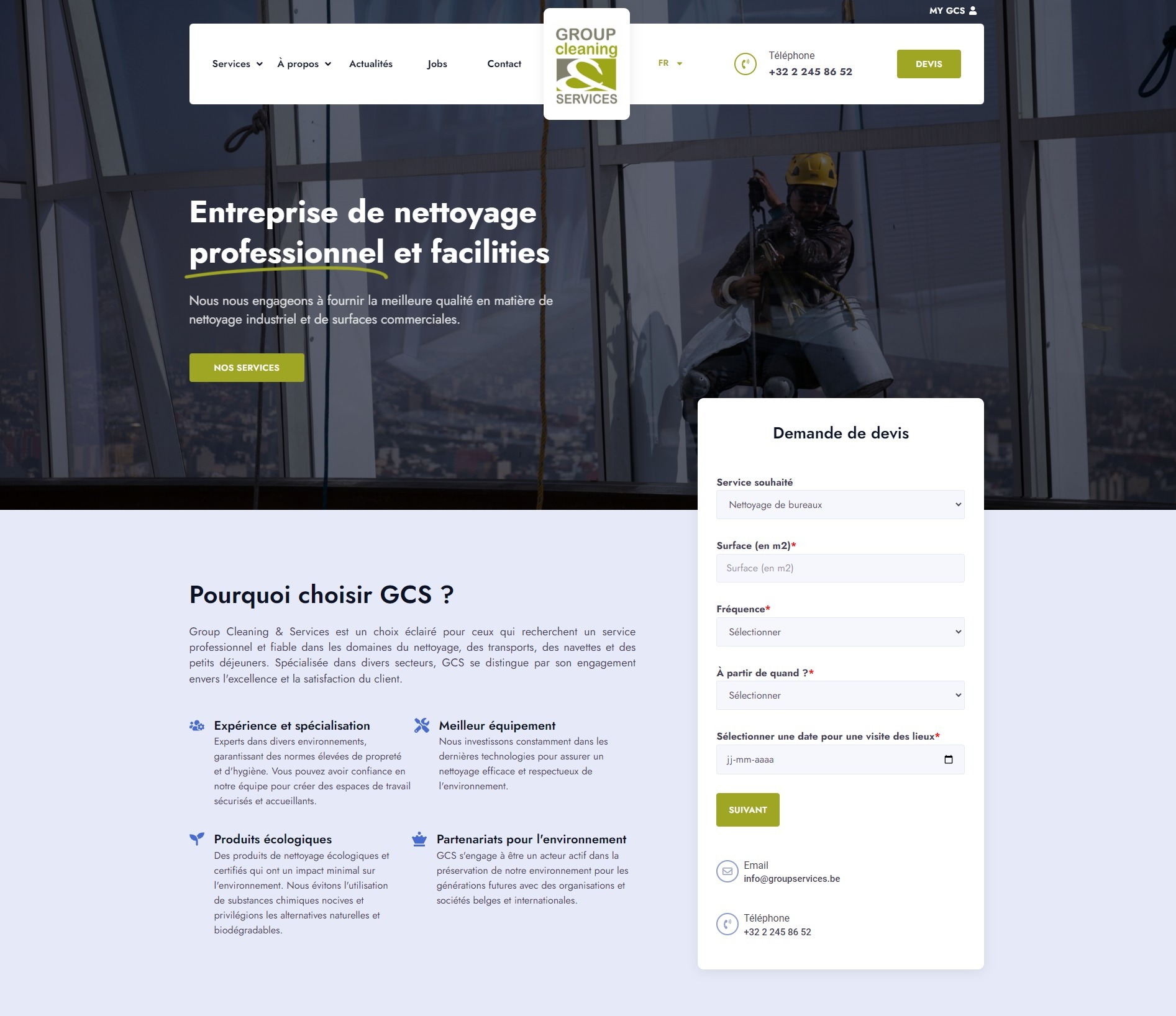 Group Cleaning Services cherchait à renforcer sa présence en ligne pour promouvoir ses services de nettoyage professionnel et de facilities management en Belgique. L’objectif principal était de créer un site web intuitif, informatif, et professionnel, tout en améliorant la visibilité en ligne à travers une stratégie SEO efficace.
