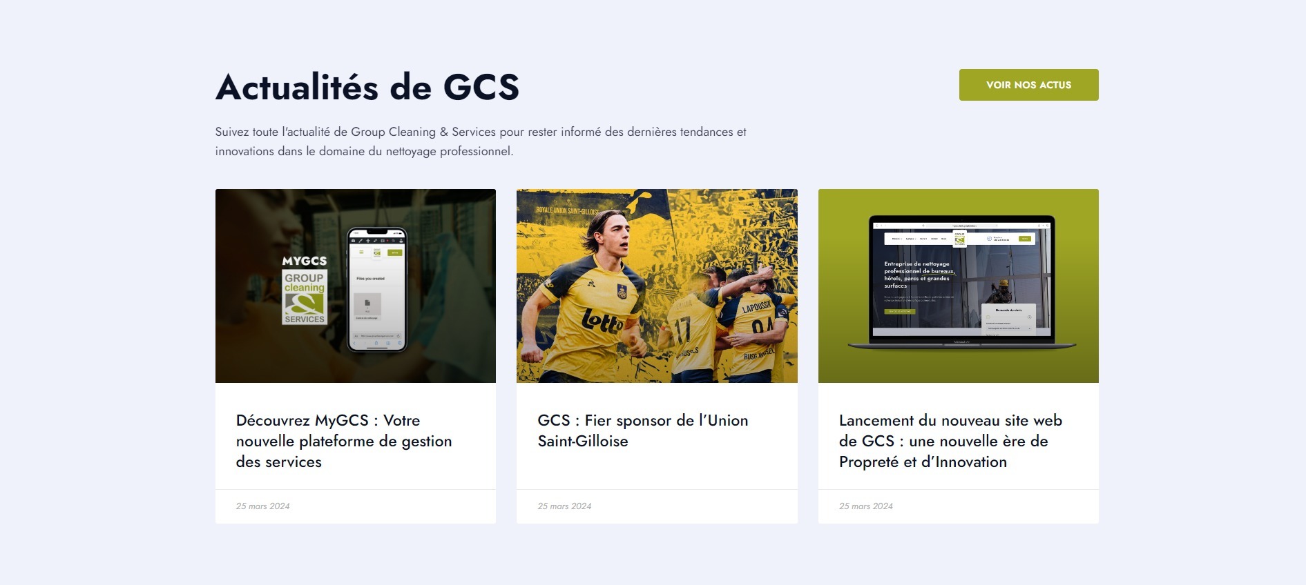 Pour engager et informer les visiteurs, nous avons développé du contenu original, incluant des descriptions détaillées des services, des articles de blog, et des témoignages clients. En outre, nous avons créé des brochures informatives et visuellement attractives qui présentent de manière concise les services de GCS. Ces brochures sont disponibles en téléchargement sur le site, facilitant la diffusion d’informations aux clients potentiels.